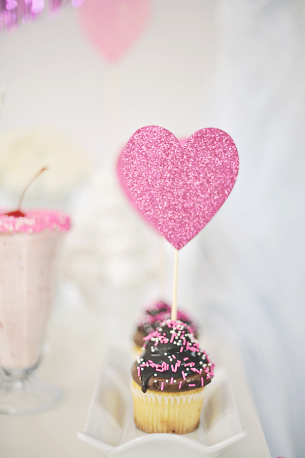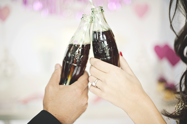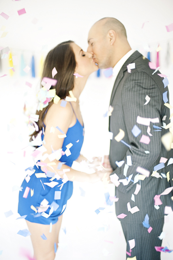 Hey ya’ll, here’s another throwback styled shoot for you! This one is all about L to the O to the V to the E. Our beautiful friends got engaged (3 years ago..AH!) and we created this sweet table for them. The backdrop is made from thrifted fabric and gluing together some dollar store tinsel.  Sometimes a little glitter, sprinkles, and a few hours of cutting squares out of crepe paper goes a long way 😉