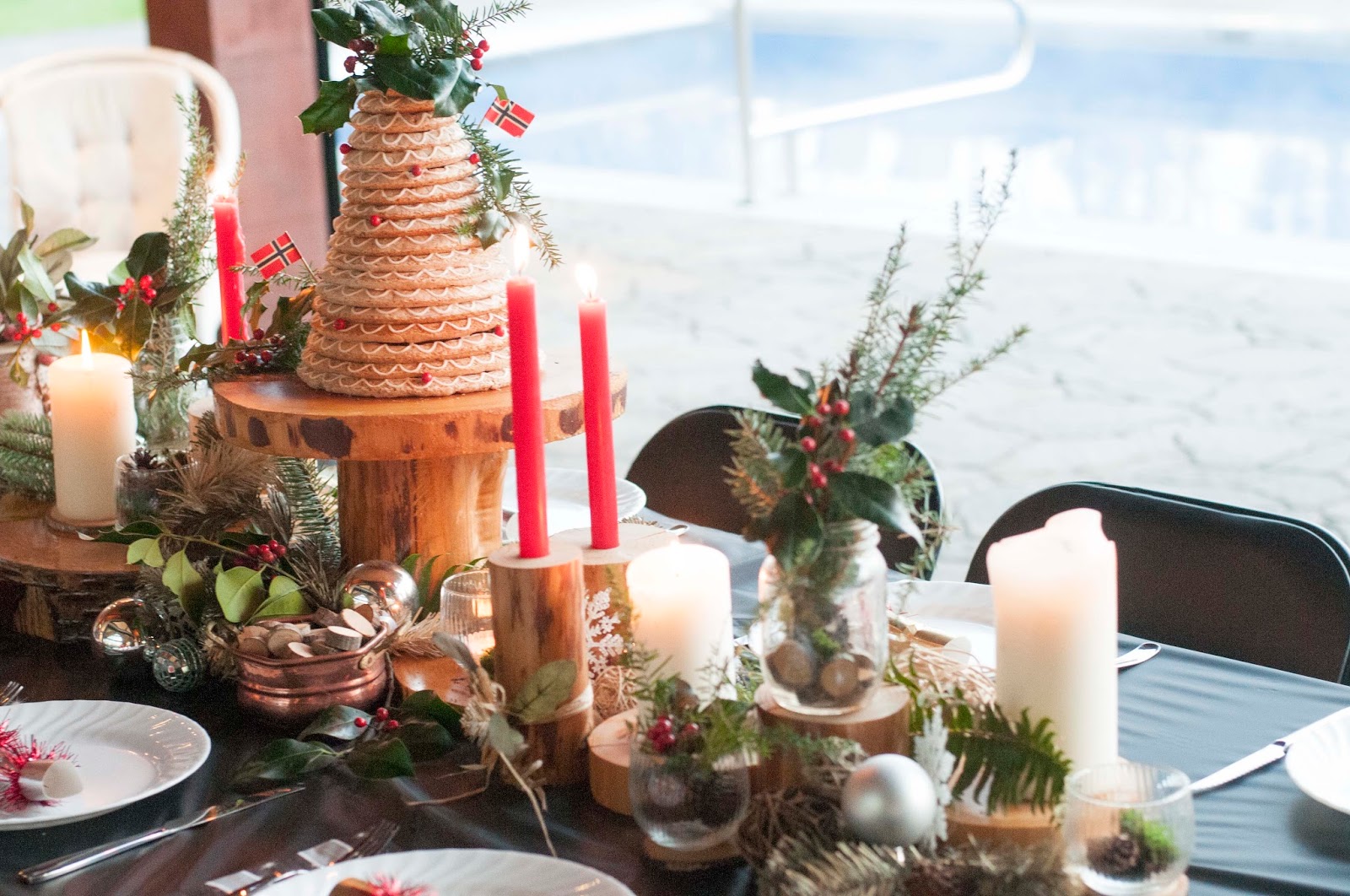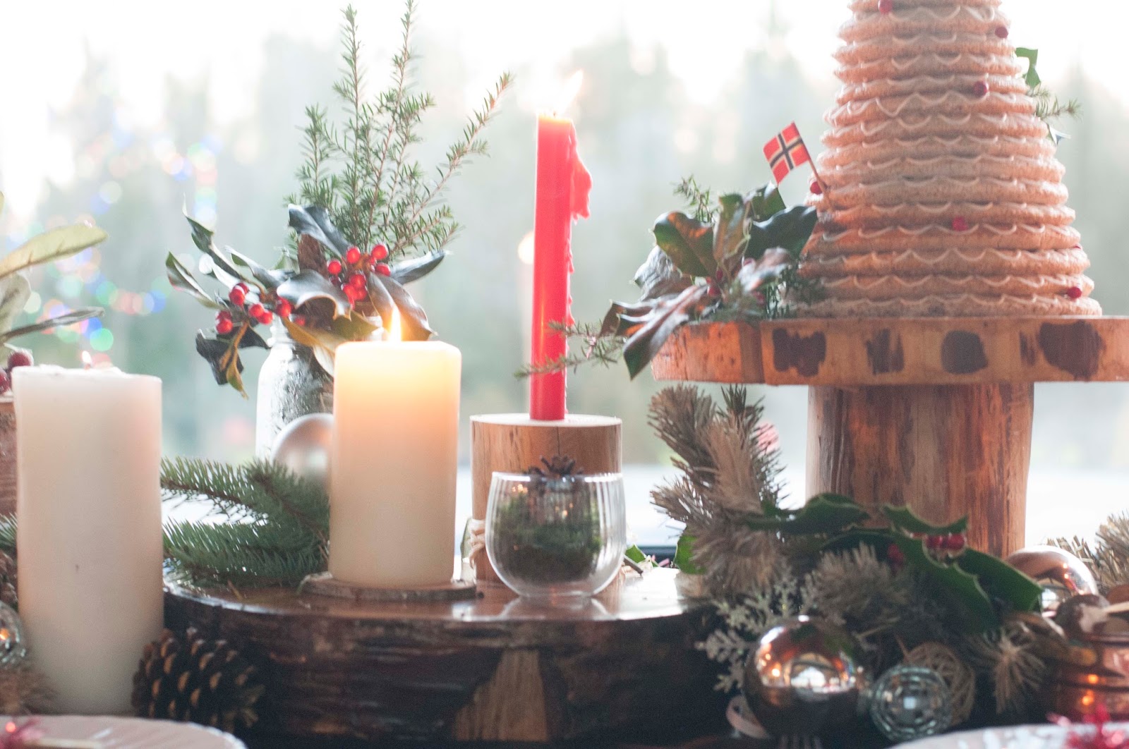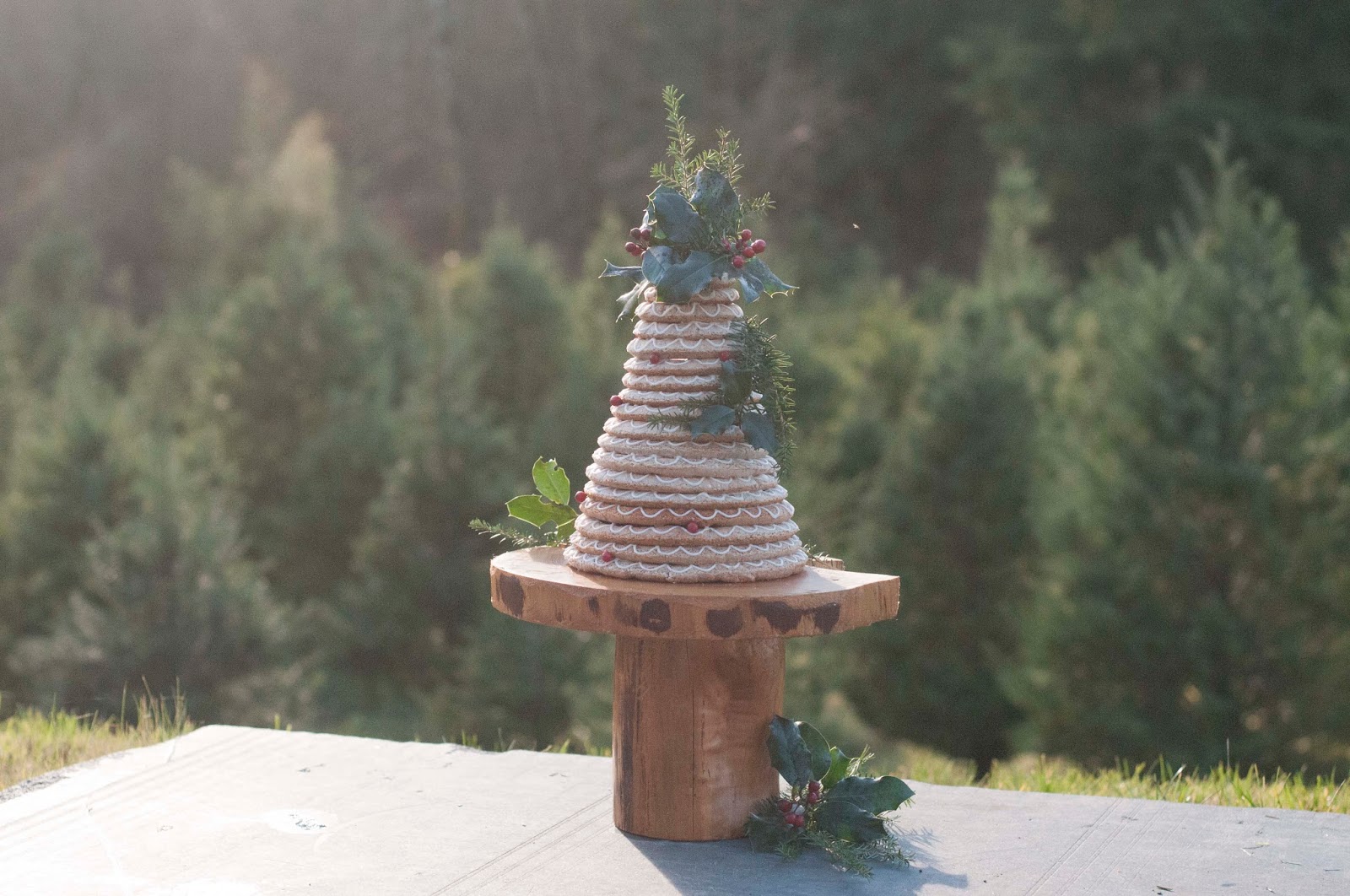 My sister in law and I created a little impromptu tablescape with holly, moss, ferns, and greens she collected from the property. The wooden cake stand, chargers, rounds, and candle holders were found just hanging out in the shop. Yes there is a shop on the property FULL of gorgeous tables and accents of different kinds made of wood by TJ’s dad, Peter.