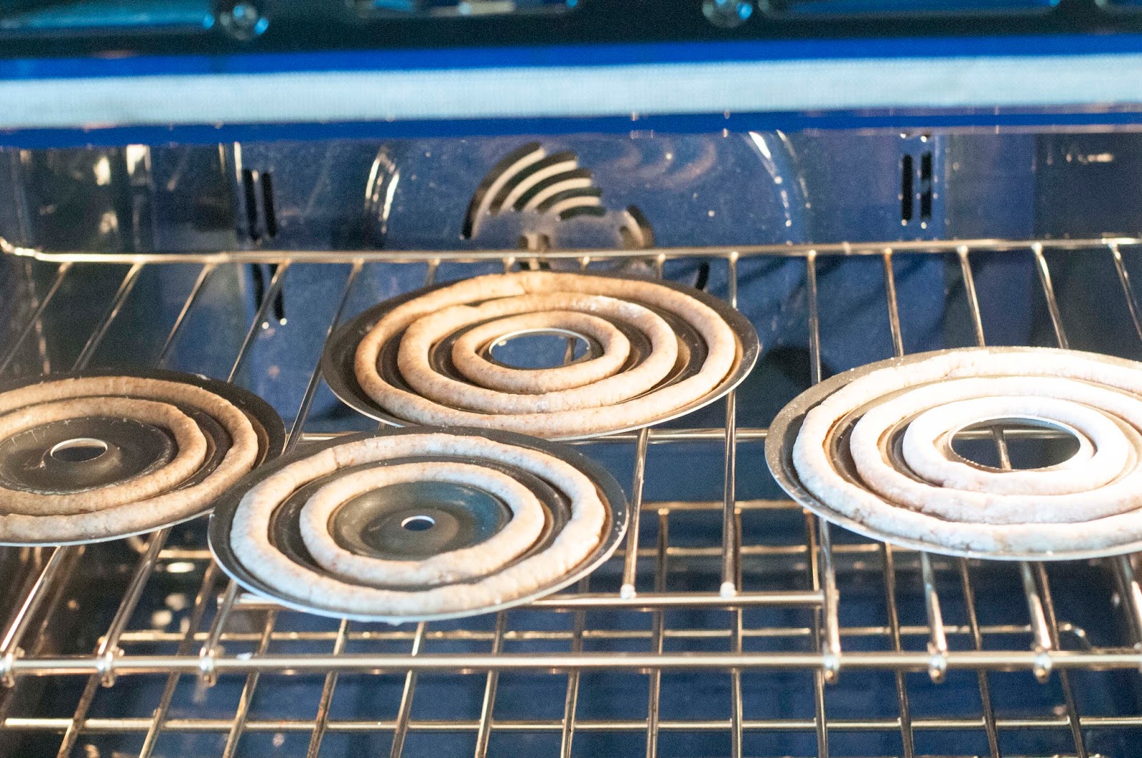 *Note: If you need to re-bake any of the rings for whatever reason, wipe out the mold thoroughly and dry it before buttering again. I burned one because I had residual butter left on it.