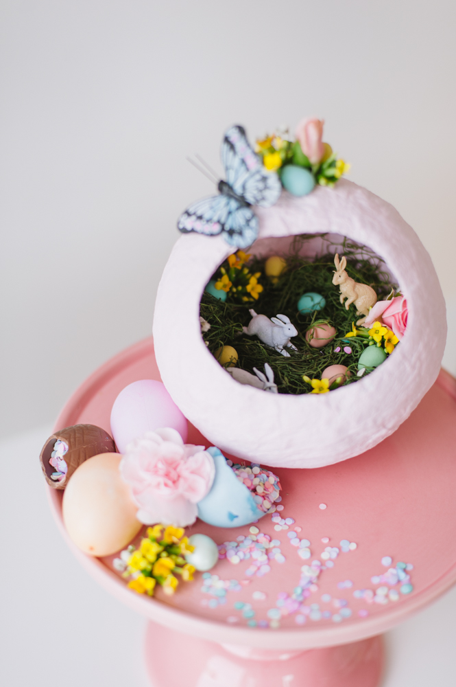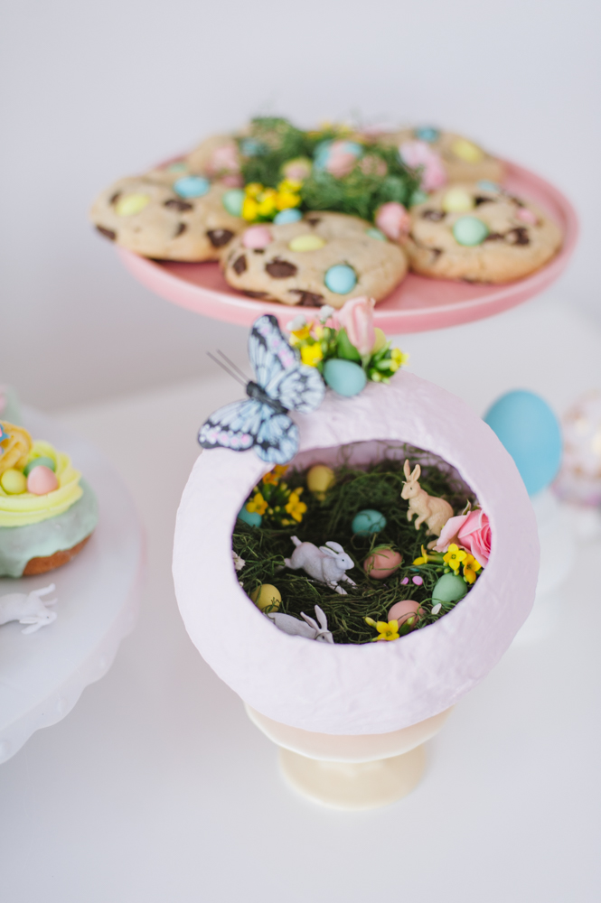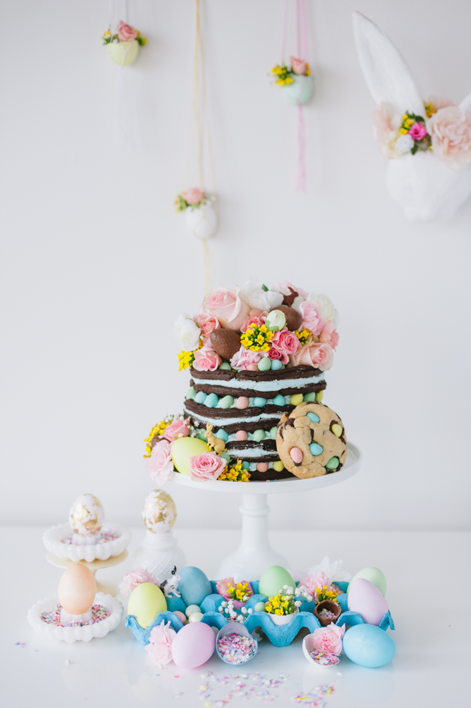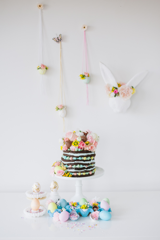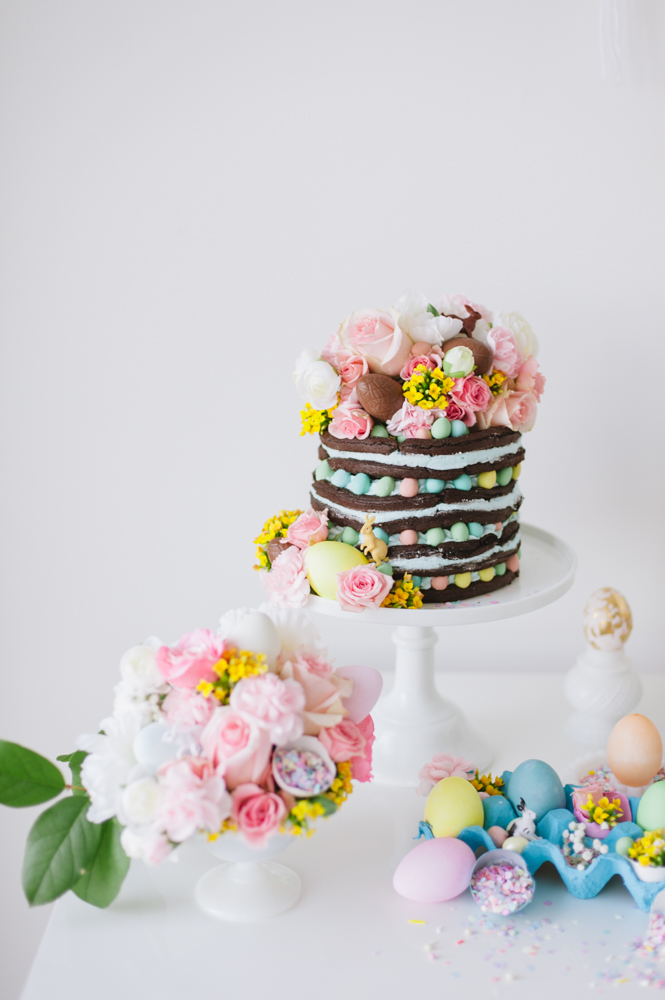7. Once the cake is in place you can add few large chocolate eggs by simply resting them in the flowers.