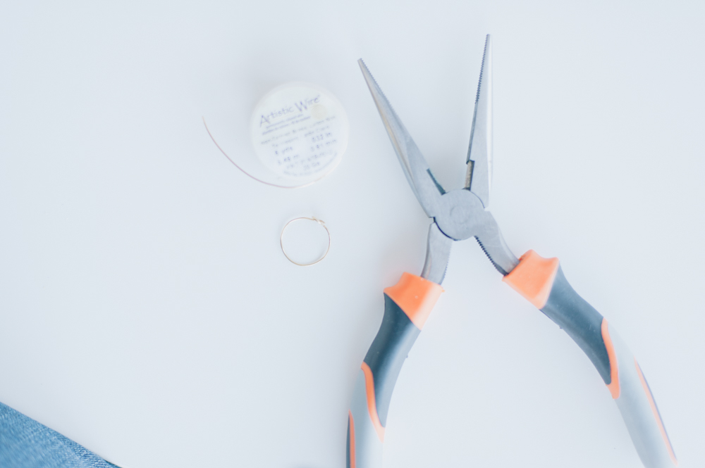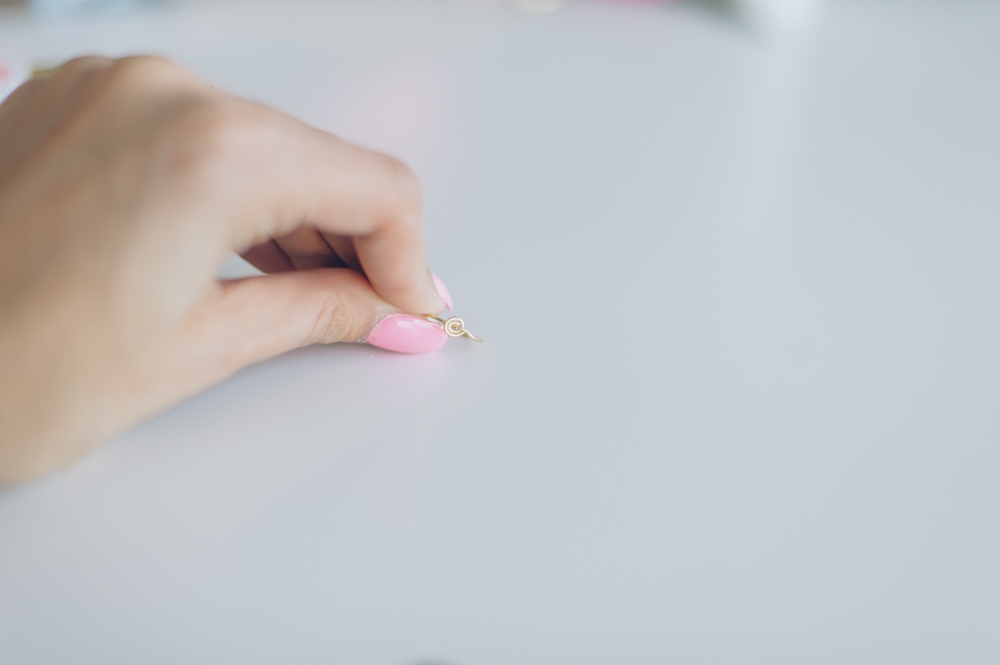 Put on a piece of parchment paper and bake per instructions on the package. Now for the ring part! You can definitely buy ring bases but we couldn’t find any we liked, so we made our own with gold wire.