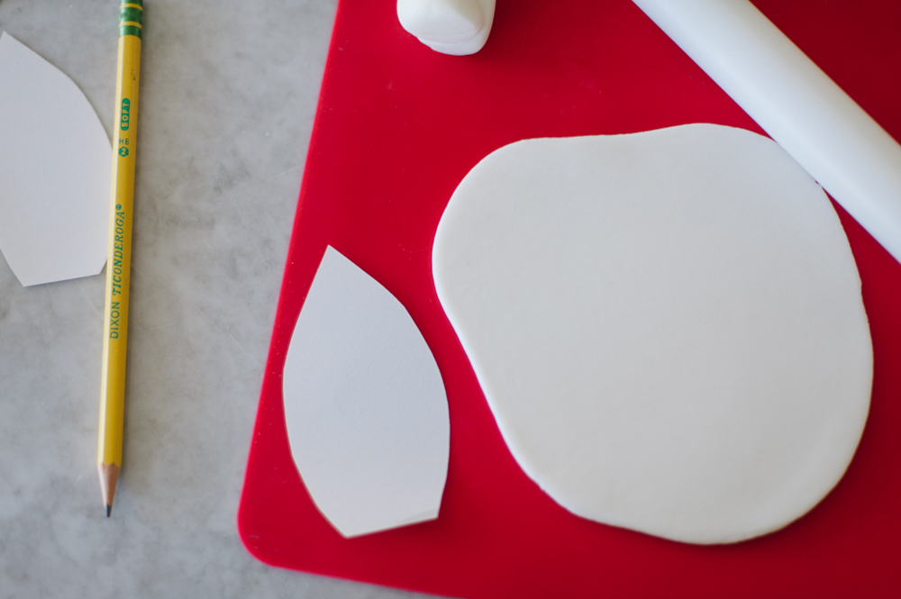 Roll the fondant out on the silicon mat and then cut out with the knife.