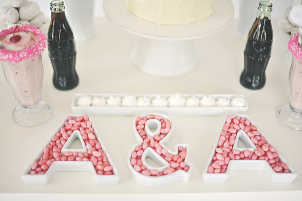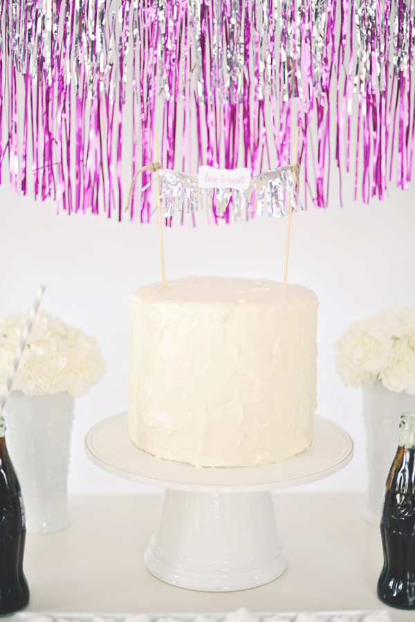 Hey ya’ll, here’s another throwback styled shoot for you! This one is all about L to the O to the V to the E. Our beautiful friends got engaged (3 years ago..AH!) and we created this sweet table for them. The backdrop is made from thrifted fabric and gluing together some dollar store tinsel. Sometimes a little glitter, sprinkles, and a few hours of cutting squares out of crepe paper goes a long way 😉