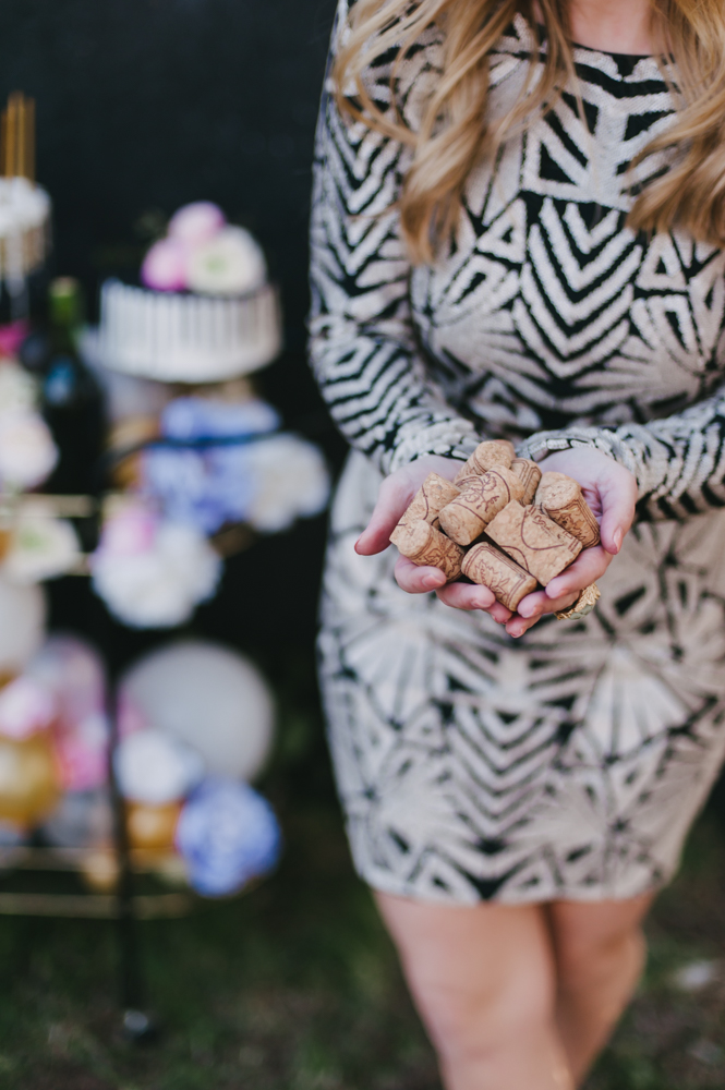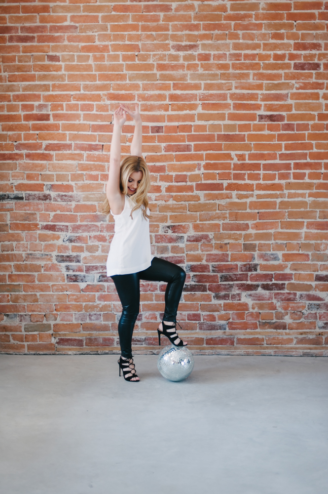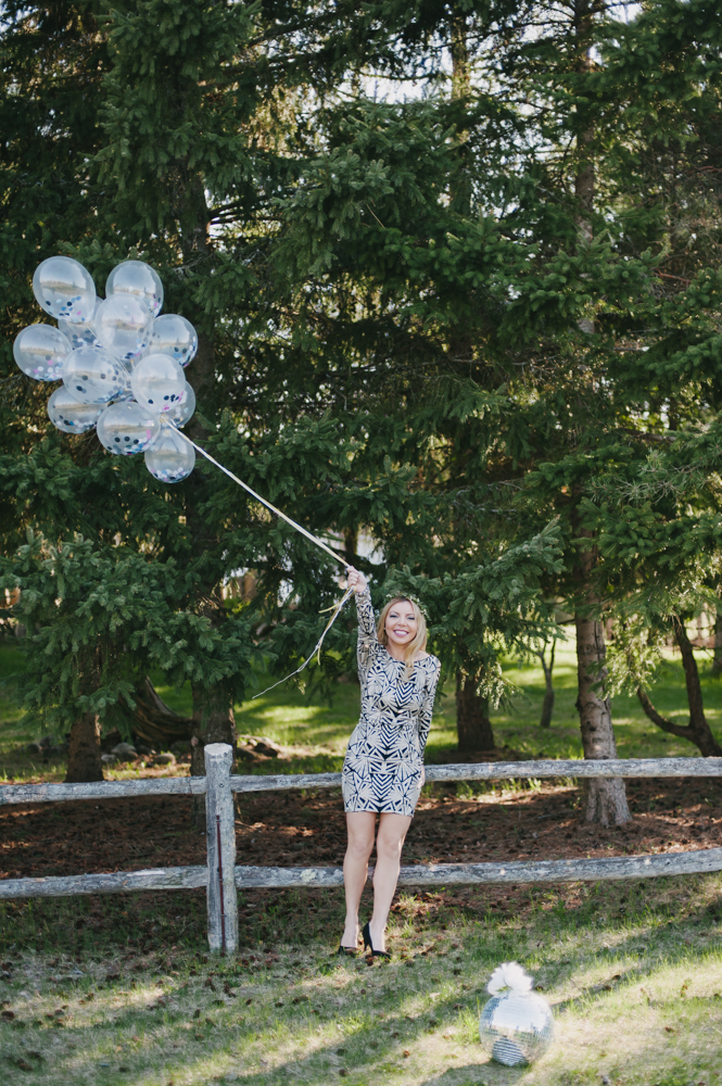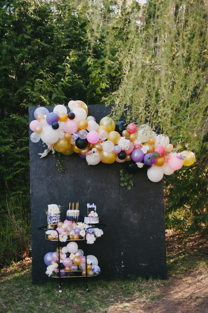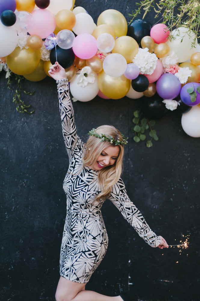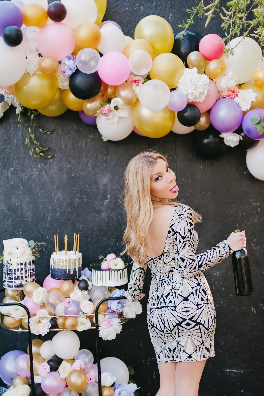Christina is hands down one of our favorite clients. This is her second styled shoot with us, and she’s all about them build-a-cakes. She asked Nat and I to create a fun concept for her 30th birthday photos. With help from the boys we made this free standing 6′ wall styled with a balloon arch inspired by The House That Lars Buit (they featured us it in a post!). Christina loves black, white and gold, but we didn’t want the images to look too NYE-ie, so we added splashes of color.