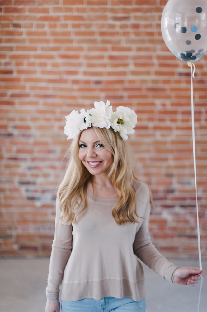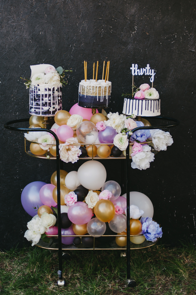 I found the bar cart at a flea market for $10 an gave it to Nat a few years ago for her kitchen. We had this vision of it over flowing with balloons and flowers and I’m pretty excited about the final product.