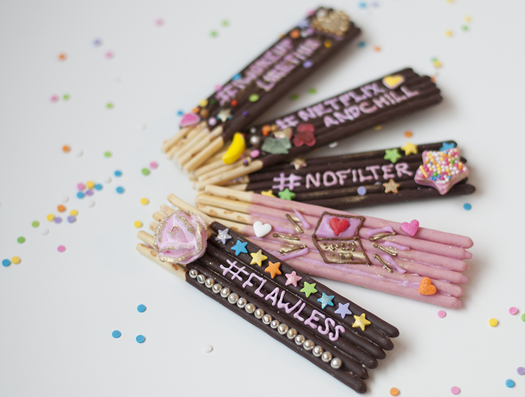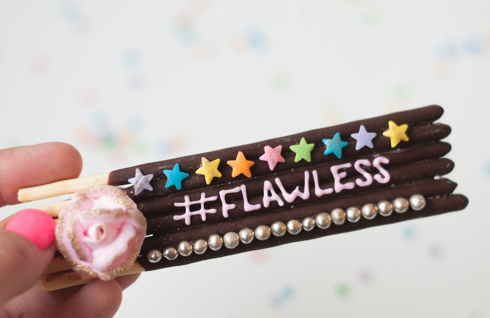 If you want to add gold to your Pocky bars mix a drop or vodka with