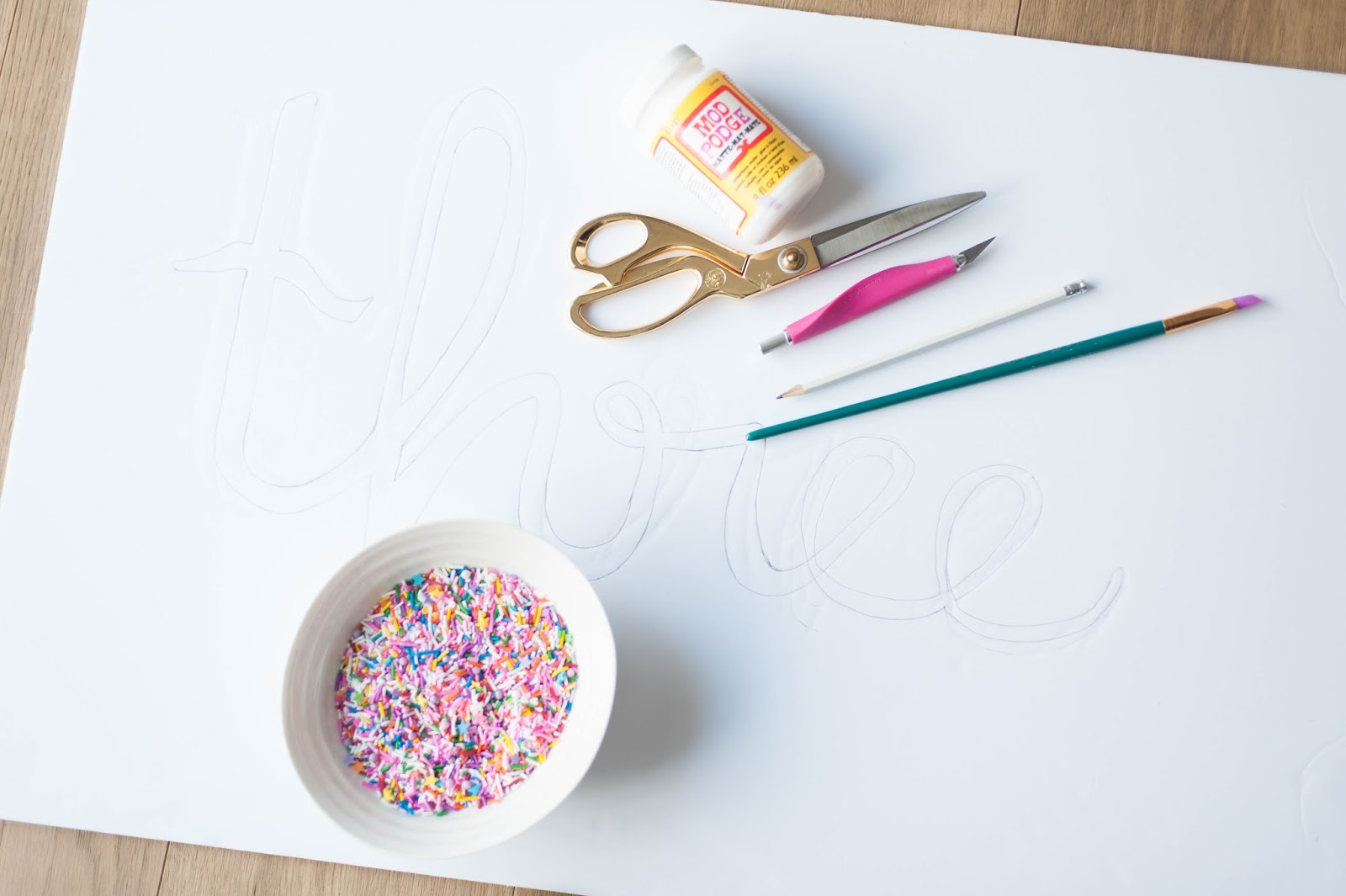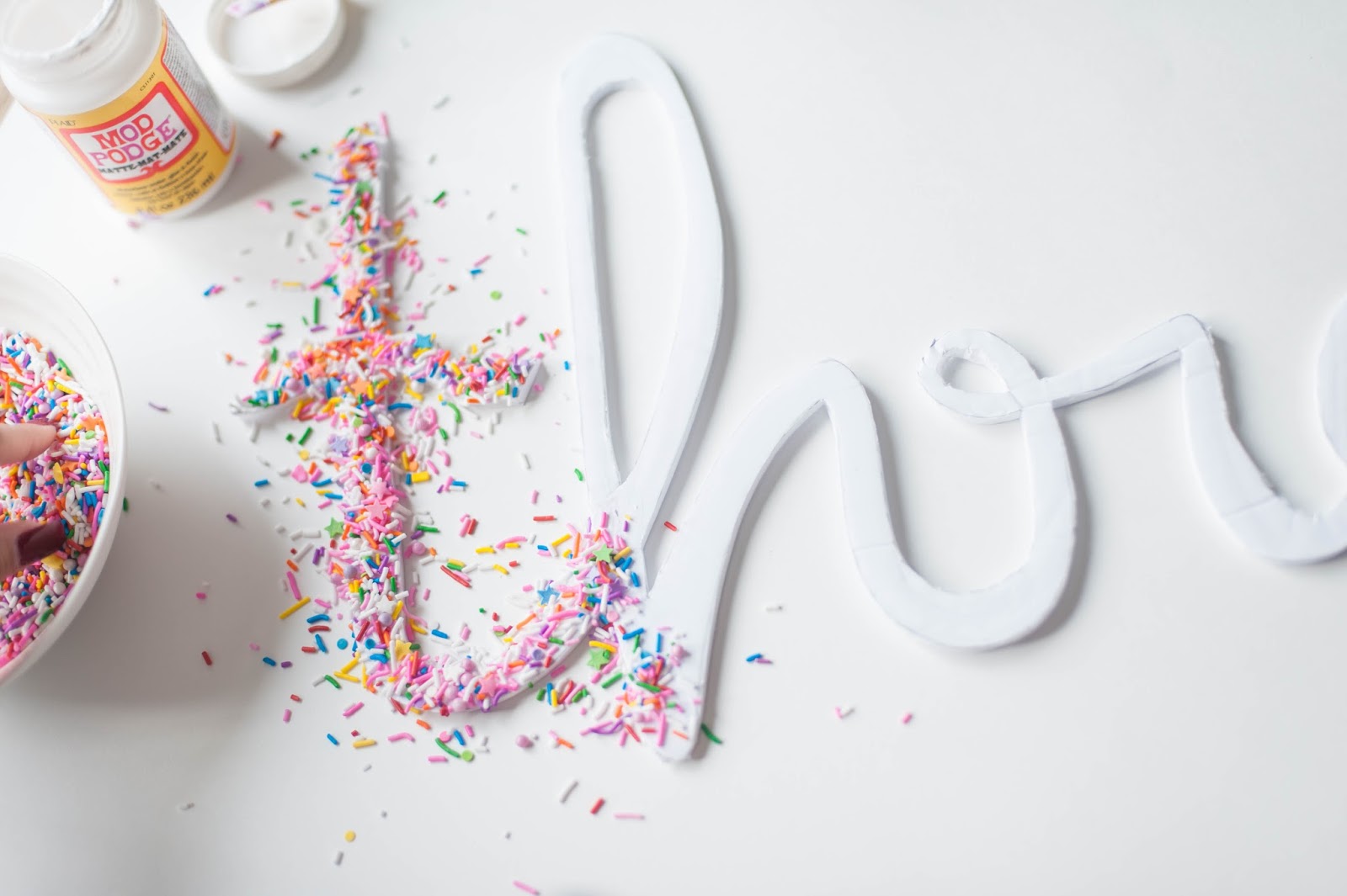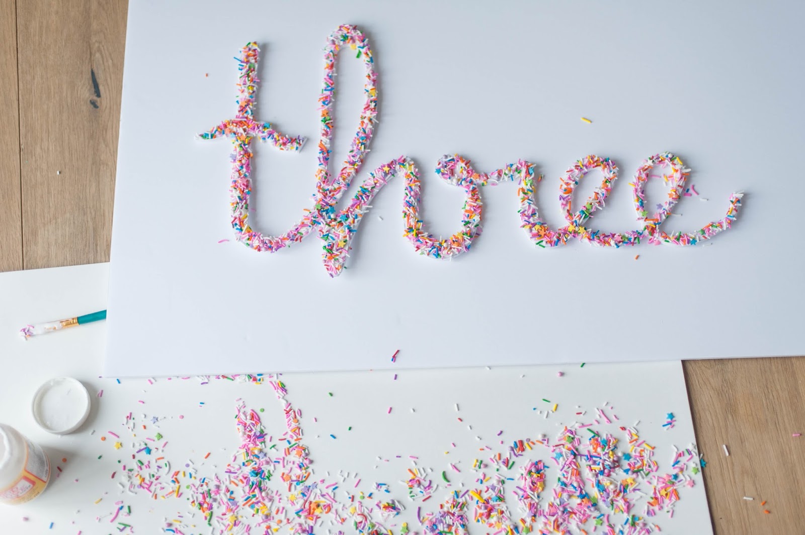 Our Sprinkle Letter DIY was featured on Oh It’s Perfect! in Ellia’s third birthday party. It’s simple and you can write literally anything. Can I get a Happy New Year in sprinkle letters please!?