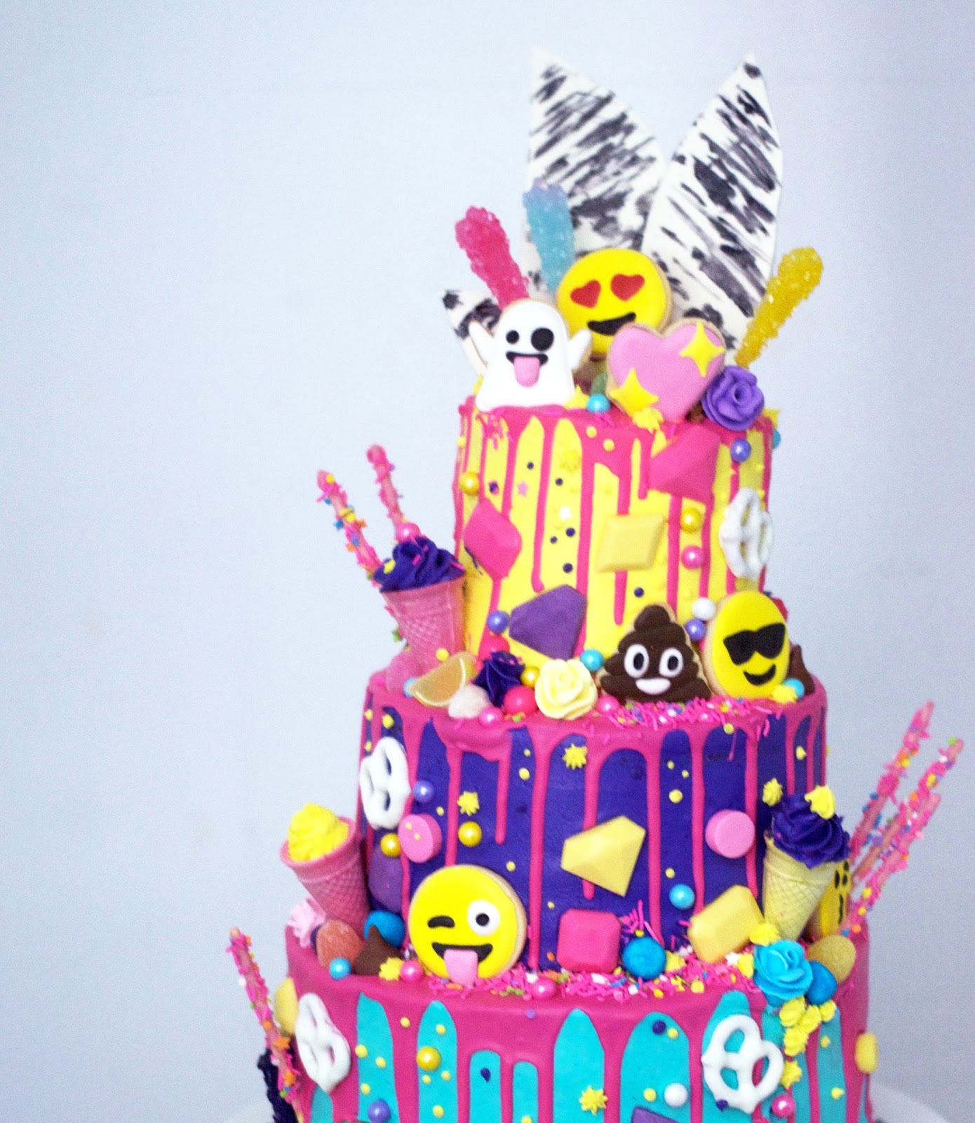 This might be my favorite build-a-cake to date. The incredible Lynzie at Love By Lynzie asked me to make this three tiered giant to compliment an Emoji Theme Bat Mitzvah. It was made for the lovely Becca, who insisted it be bright, colorful, and full of all her favorite emoticons! The inside was just as epic as the outside. Becca asked for a layer of chocolate cake, a layer of Nutella frosting, a layer of funfetti, a layer of cookie dough frosting, a layer of Nutella frosting, and a layer of chocolate cake…and that’s just ONE layer. yup.