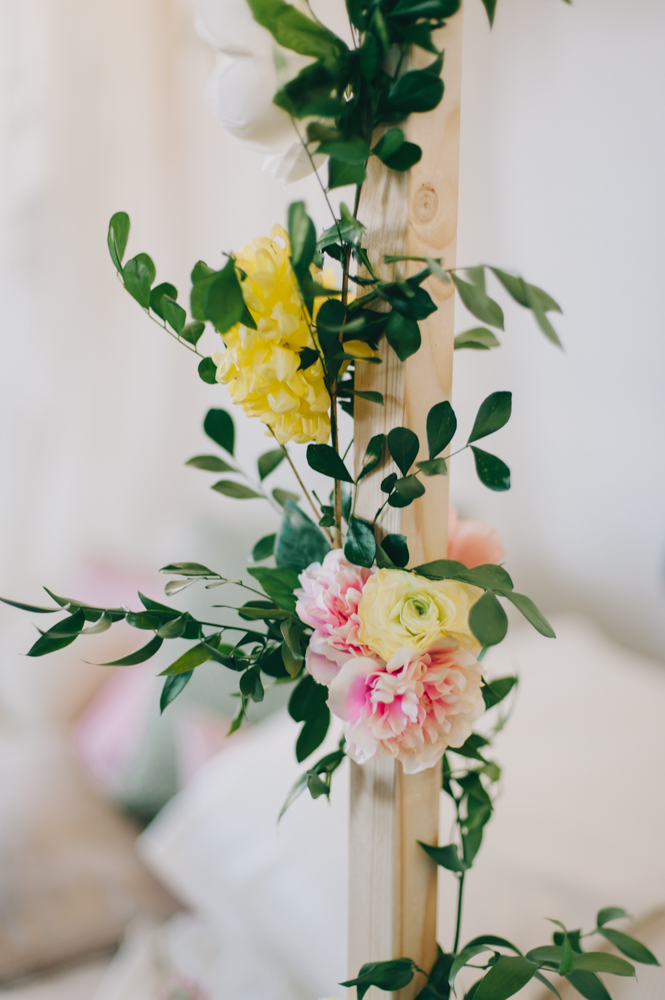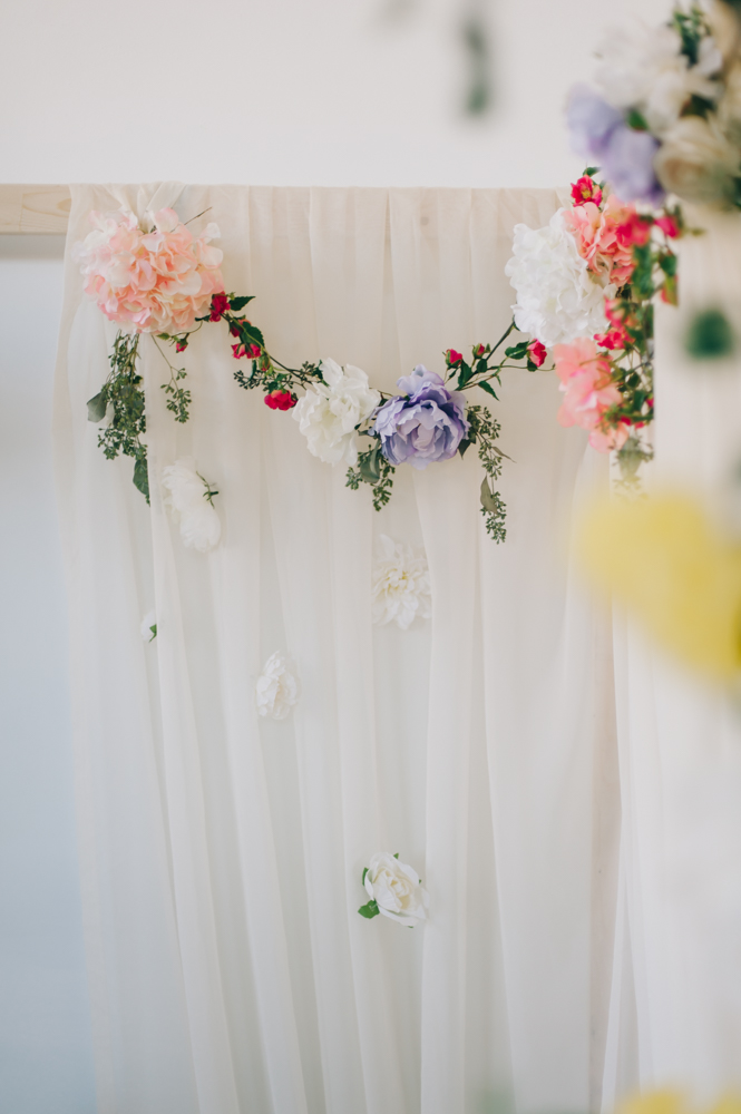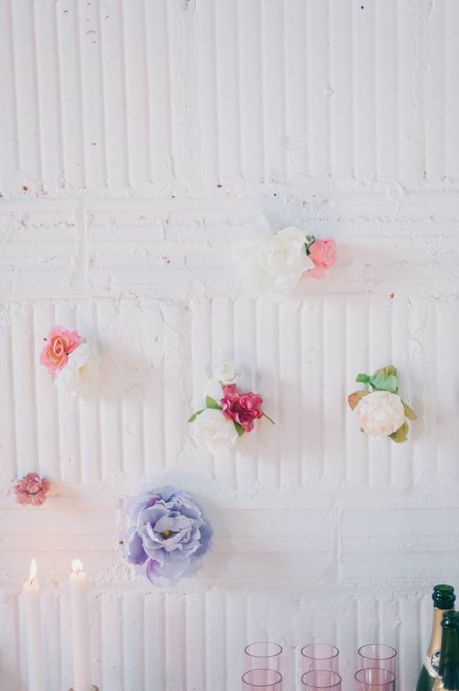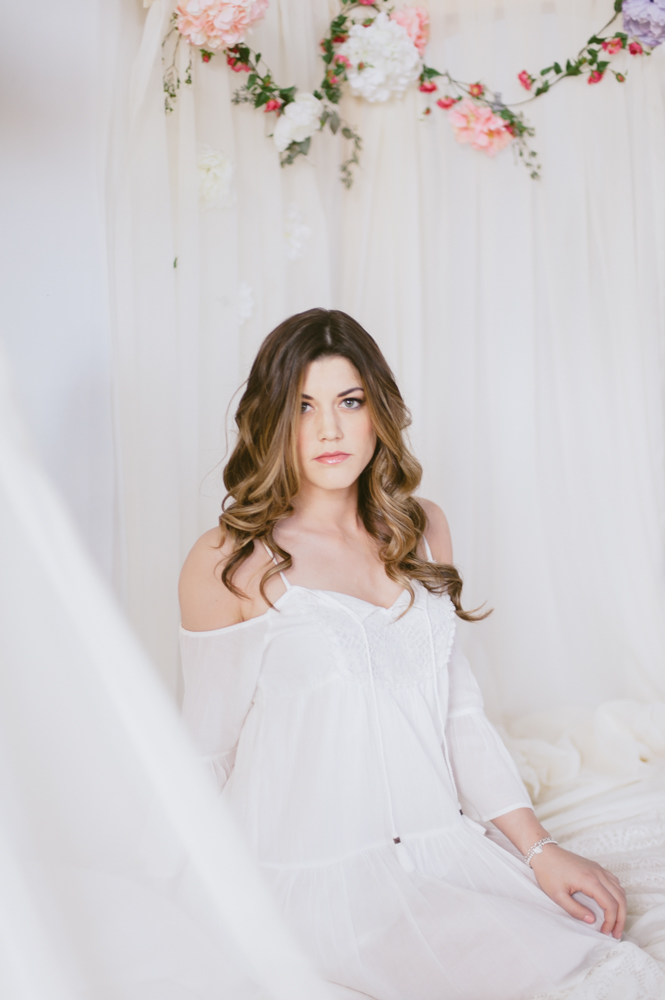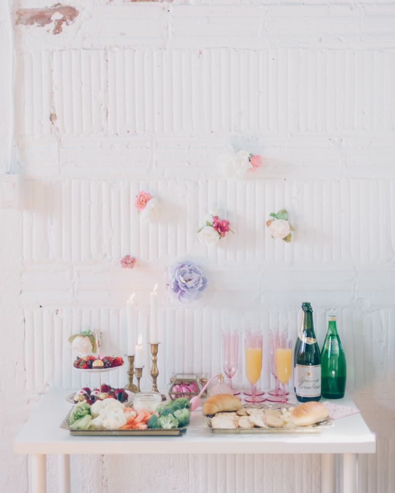 Nat and I have been dreaming up this shoot for a while. We wanted to create something feminine, soft, sexy and colorful that would encourage our guests to feel like a bombshell princess for the afternoon. My handy (and handsome) boyfriend TJ build this bed in an hour in our studio. Yah, he’s the bomb. We are lucky to have a gorgeous space in Toronto to create in. The studio is shared with group of artists I am a part of who study acting in the evenings. It’s a big, bright space with so many great shooting spots.
