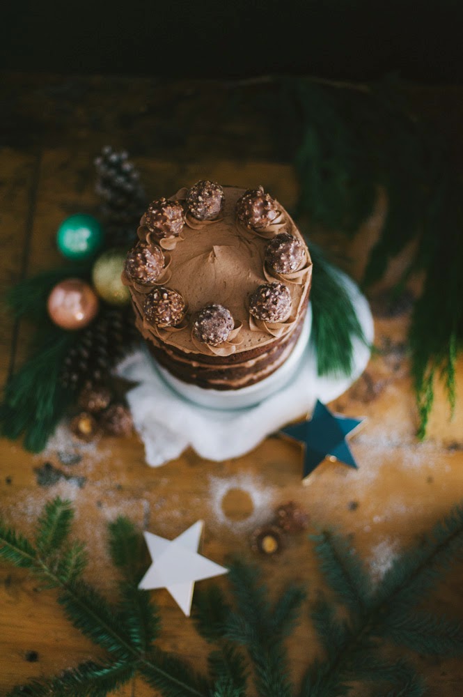 plate. Place a layer of buttercream with Ferrero Rocher layer on top of