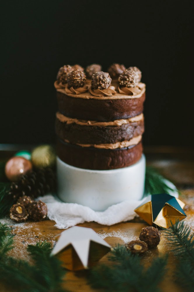 buttercream. To assemble Ferrero Rocher Chocolate Cheesecake Cake, place