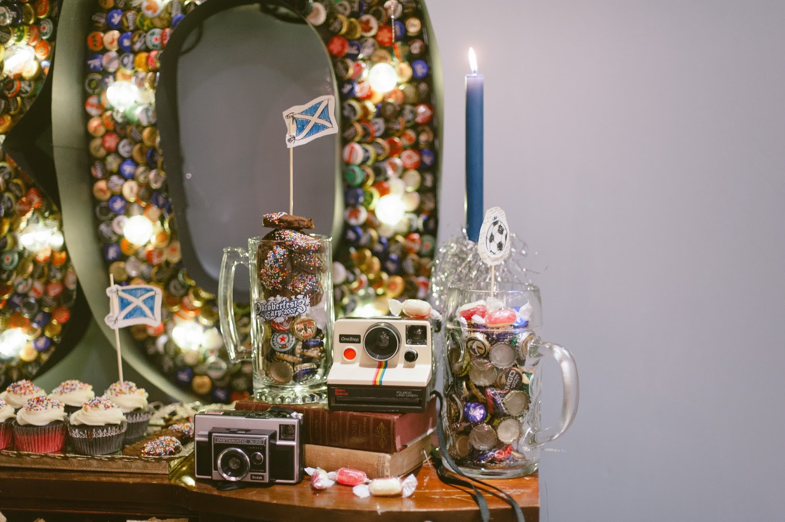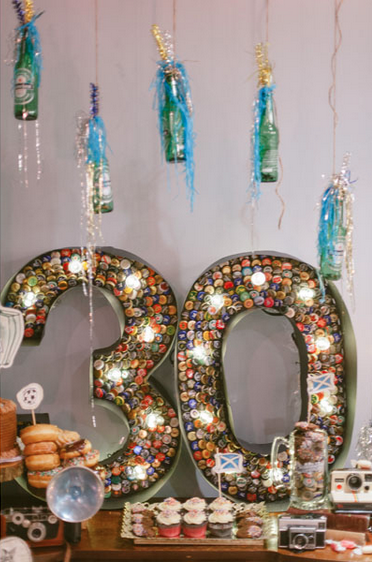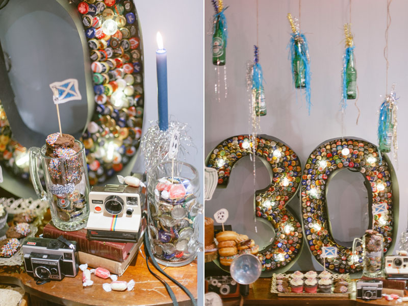giant marquee 30 covered in caps, and used them throughout the space. Our very own talented Sarah painted a few cake toppers for me that I think brought everything together.