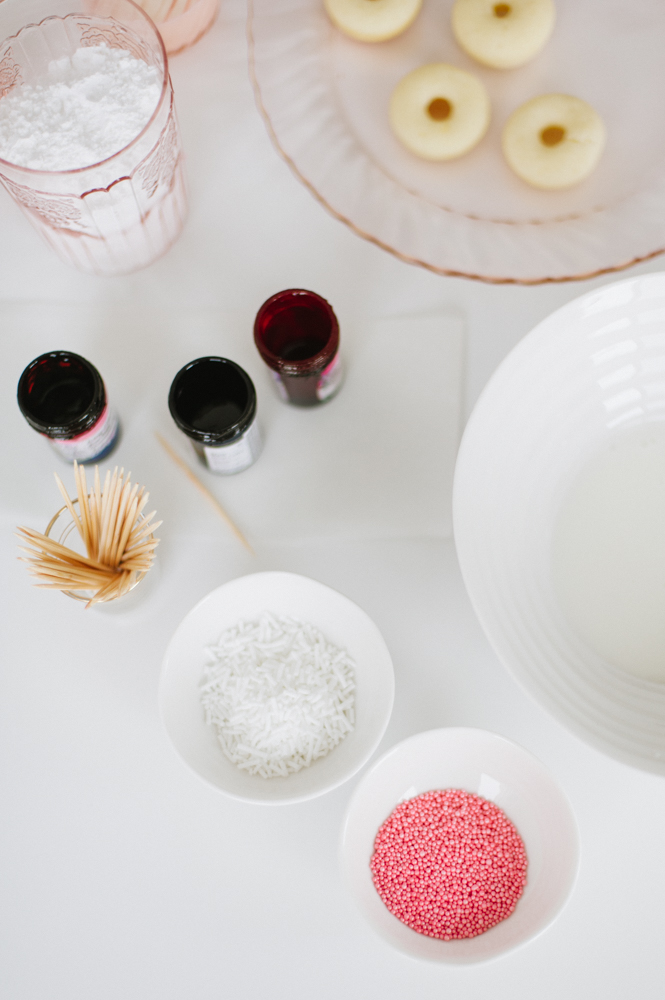 Bake some mini donuts! There are tons of recipes over on Pinterest. I used an almond flavoured one and added mini chocolate chips to some of them.