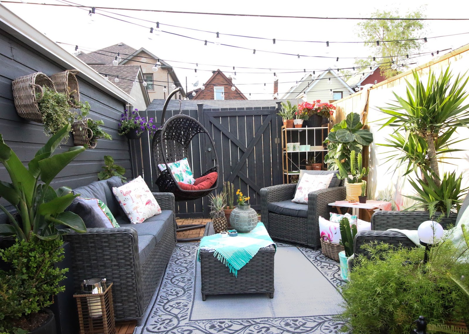 Because the space between the garage and fence is so intimate, I designed it to feel like an outdoor living room.