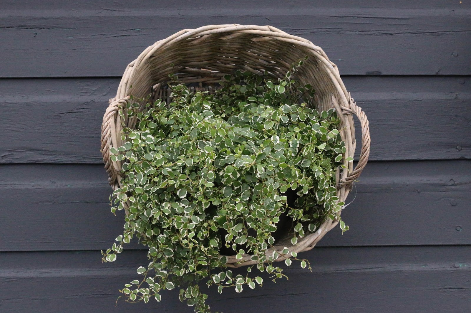 These indoor wicker baskets come in three different size. I love them nailed to the wall with plants in them.