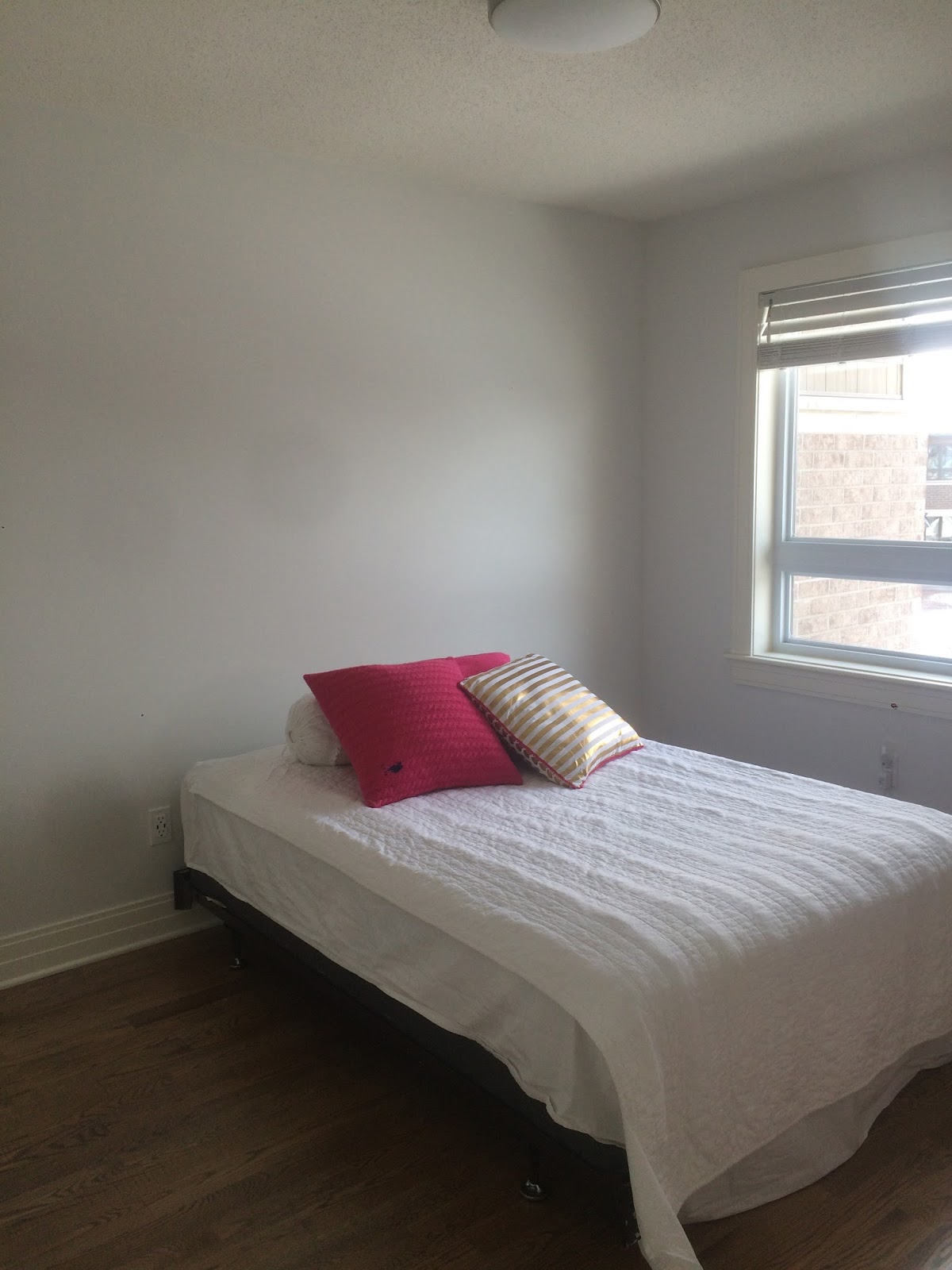 Today I am sharing one of my favourite DIY projects I have ever done, Ellia’s Mountain Mural! I always knew when we built our last house that we wouldn’t be there forever because we wanted Ellia to start in a school in the town which we planned to live for a long time so we aren’t switching her around. But when it came time to sell, it was a little sad because I loved her other room so much, it was such a labour of love. If you haven’t seen it, a post can be found over at Mini Style blog here. You can also see her first nursery at Fawn Over Baby here. The new house is much, much smaller, and Ellia’s room is about 1/3 the size. She is not a great sleeper, and either my husband or I have to stay with her to fall asleep and one of us often ends up in her bed at some point over the night so we decided to upgrade her bed to a double, even though it takes up most of the room…we were a little over sleeping on the hardwood floor. I really wanted there to be a feature wall, since that has been a theme in both her other rooms. Mercedes and I brainstormed ideas, I wanted something that was going to be pretty but not cost a fortune. I initially wanted to do wallpaper, but since we won’t be in this house for too long, and it is pretty costly, I decided to do a mural painting, it brought me back to painting murals in my high school with my art class! We came up with a theme for Ellia’s room, which is centered around the mountain wall and her duvet, it’s sort of a Whimsical California Desert thing. The mountains remind me of driving in California, with the gorgeous mountain views, it’s something we don’t have here in Ottawa where we live.