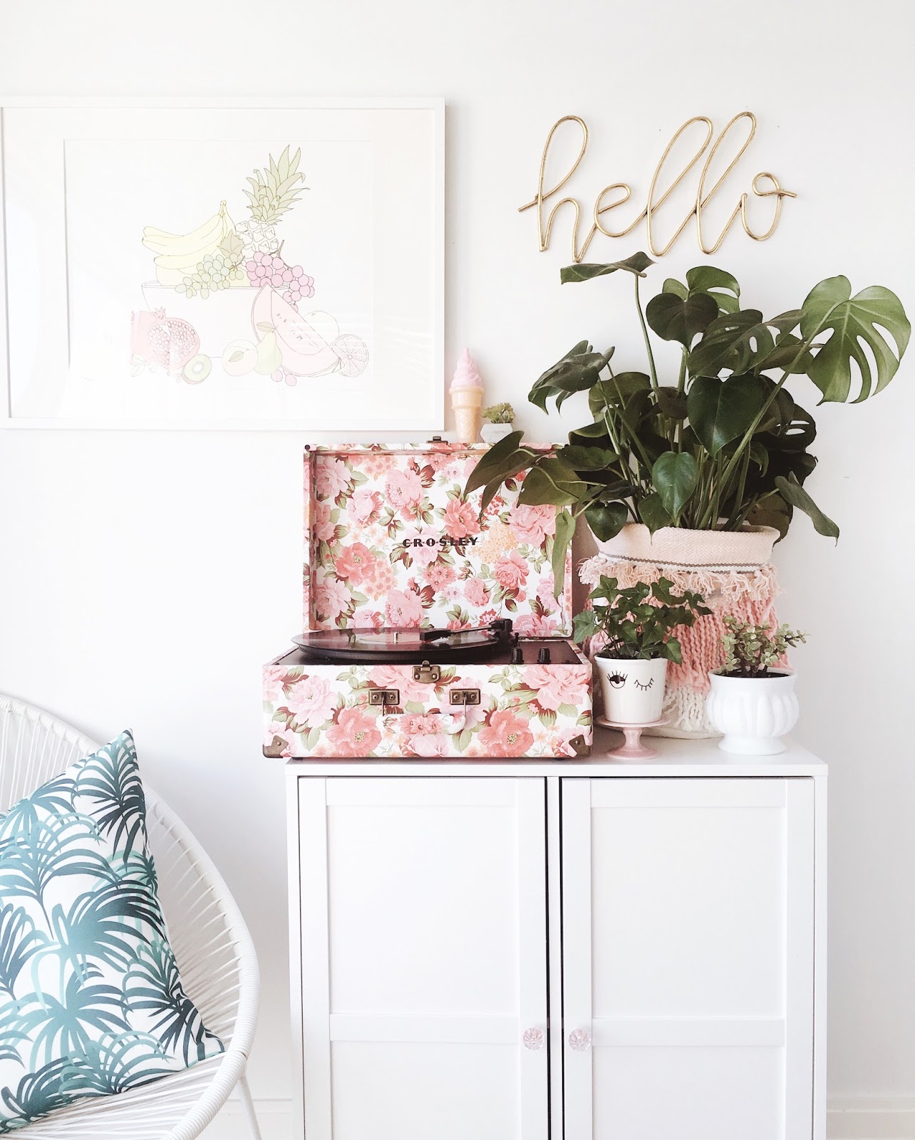 Nat has the same sideboard and changed to knobs to pink ones to match her space. I’m obsessed with how she styled hers.