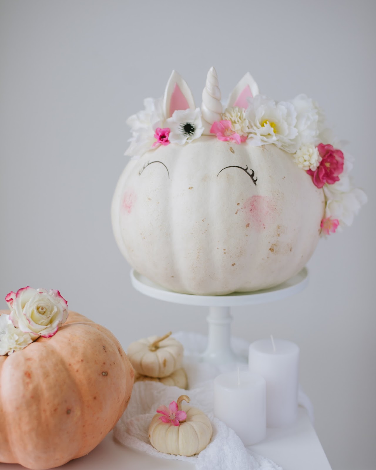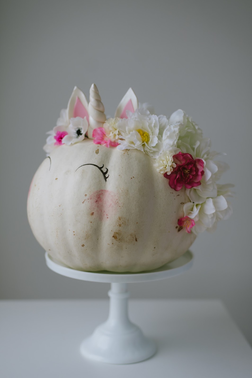 Since Halloween is right around the corner, I decided turn a pumpkin into a unicorn, because, if you can’t be yourself…am I right? So if you think a cake is too much out of your comfort zone, why not try the pumpkin version?!