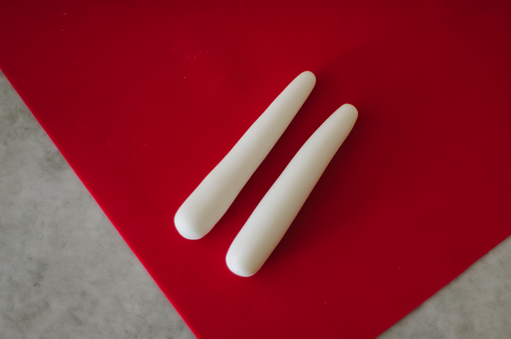Roll out both pieces on the silicon mat. Taper one end of each, to resemble a slight cone shape.
