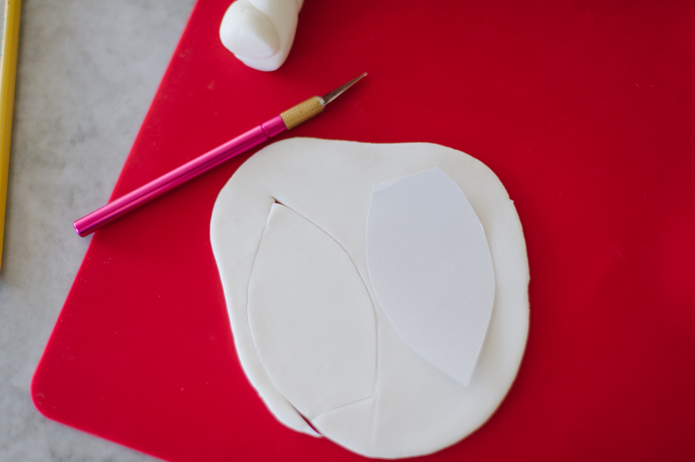 Roll the fondant out on the silicon mat and then cut out with the knife.