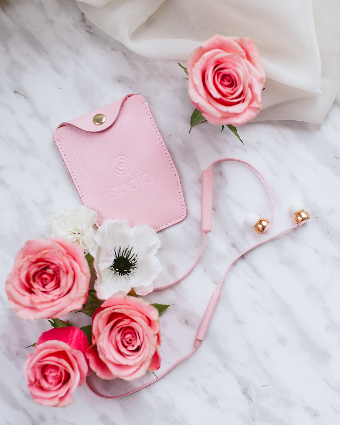 Mercedes and I both got a pair of SUDIO Wireless Earphones and we are seriously loving them a lot! They came all the way from Sweden, Mercedes got white and rose gold and I got the pink and gold, obviously! The design is awesome and the sound quality is excellent, plus they are super light weight and wireless with 8 hours of freedom, so they are perfect for when we are working out, cleaning the house or having a solo dance party. I even wear them when I am working in Starbucks, or watching Netflix while the husband is sitting right beside me watching the hockey game! They come with a leather carrying case, which is great for me to throw in one of my giant bags and for Mercedes to throw in her backpack, because that girl does not own/carry a purse. We’ve also been known to be working in the same room, both with our earphones on, probably singing & dancing to different tunes…we are super cool, we know.