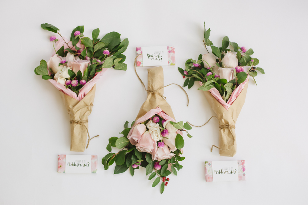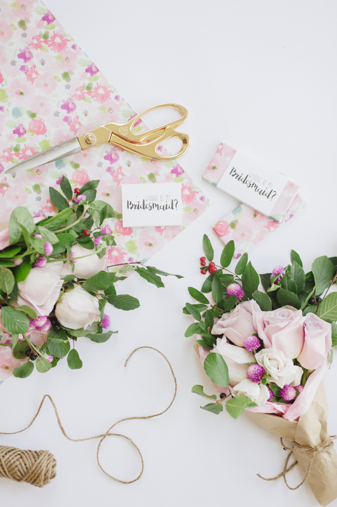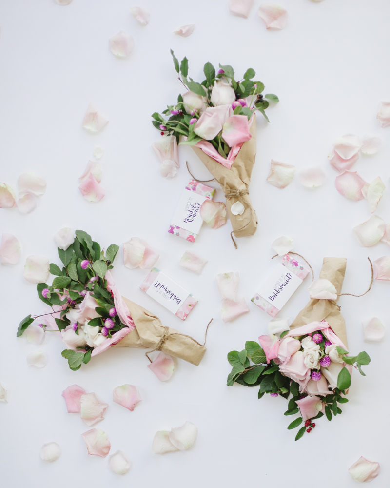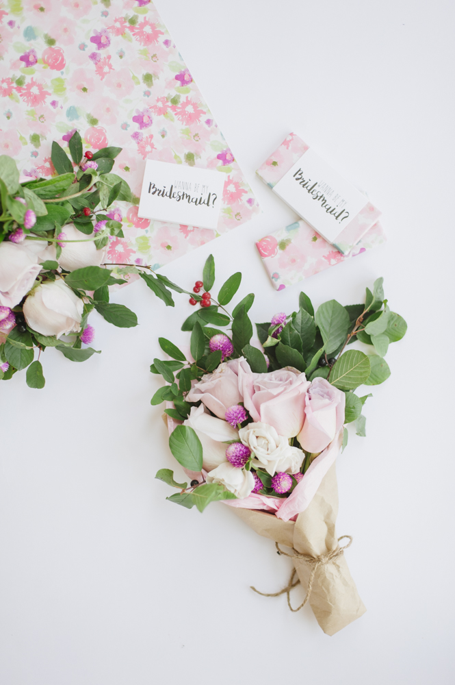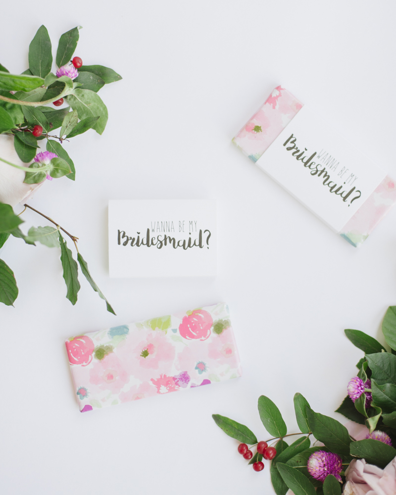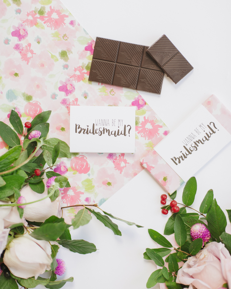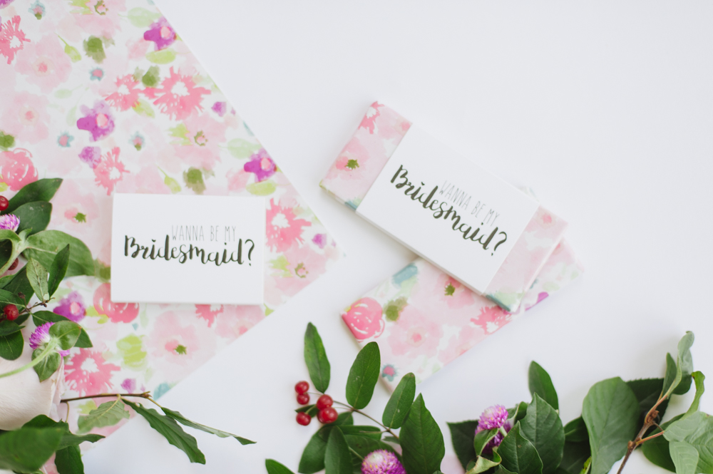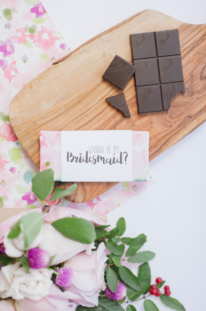 I didn’t think I wanted a bridal party. It seems strange to pick my favorite women to be a prominent part of our wedding day and leave others out. Then I thought it would be great to have my closest 15 girls as part of our bridal party. In hindsight, not my best idea. So I decided to ask my two sisters Natalie and Bee, and my two best friends Sarah and Sarah. I gave them their favorite chocolate bars (and Reese bites!) wrapped in some pretty paper from the dollar bins at Michaels. We also made this cute “Wanna be my Bridesmaid?” printable in case you or someone special you know is getting married and want to do something fun and different for your ladies!